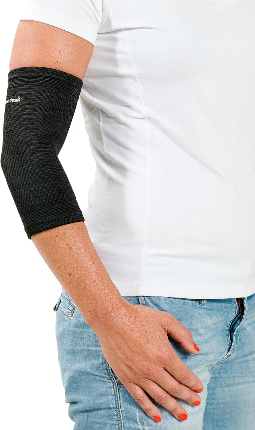 BACK ON TRACK THERAPEUTIC BLACK ELBOW BRACE If you're grappling with discomfort from tennis elbow, golf elbow, or general elbow joint and tendon pain, our Back on Track Therapeutic Elbow Brace could be your solution. Its 2-way stretch elastic material offers extra elbow support and ensures comfort during active training sessions and rest periods. Designed for a secure fit that stays in place during any activity, this brace won't slip down or cause interference. Leveraging our cutting-edge Welltex Technology, the elbow brace harnesses your body's natural energy to generate a therapeutic far infrared effect, potentially easing joint or tendon pain. This technology helps enhance blood circulation and diminish inflammation. ABOUT BACK ON TRACK Back on Track is a Swedish company committed to improving health and well-being through innovative textile technologies for the benefit of people, pets, and horses. We offer a wide range of therapeutic products to assist with preparation, performance, and recovery. Each product is the result of a balanced and well-thought-out combination of unique textile technologies, high-performance functional fabrics, and anatomically conscious design.