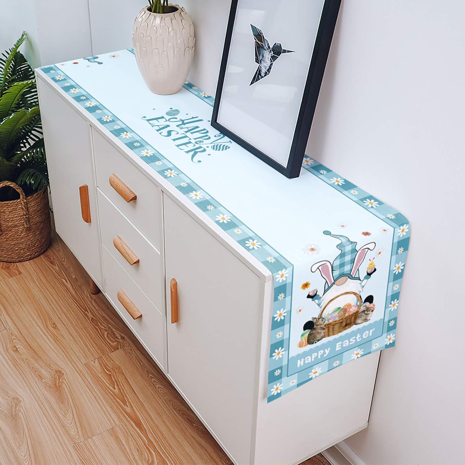 Bunny Tail Easter Eggs Table Runner 15x68 Inches Long, Easter Funny Rabbit Table Runner for Wedding Party Holiday Dinner Home♥ Suitable Size: 37*173cm, 15x68inch dining table runner, appropriate for a table that can seat 4-6 people.♥ High Quality: This kind bunny tail easter eggs table runner is made of durable linen blend fabric with adorable rabbit and eggs, beautiful and durable.♥ Special Design: Funny pink rabits and blue eggs, makes decorations for holiday, gatherings, parties special and impressed.
