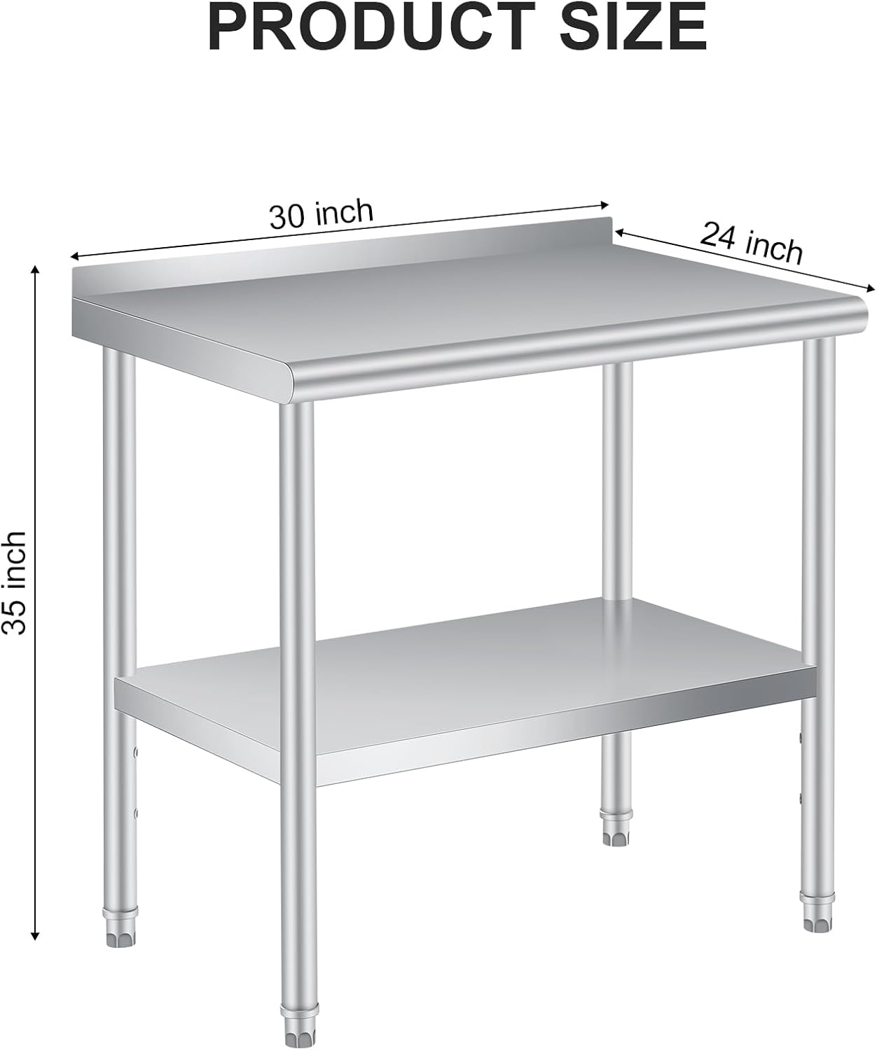 Elevate your culinary or workspace experience with our Stainless Steel Work Table, designed to meet the demands of both professional chefs and home cooks. Crafted from high-quality stainless steel, this prep table boasts a robust 0.8MM thickness, ensuring exceptional durability and longevity even under heavy use. Measuring 61.42 inches in length, 25.98 inches in width, and standing at a convenient height of 7.87 inches, this versatile table provides ample space for food preparation, organization, and various tasks. The impressive top load capacity of 660 lbs makes it ideal for storing kitchen appliances, ingredients, or tools, enhancing your efficiency. Safety and convenience are paramount. The rounded edges not only enhance the aesthetic appeal but also protect against accidental bumps, while the non-marring feet prevent damage to your flooring. The adjustable undershelf offers additional storage options, making it easy to customize your setup to fit your specific needs. Assembly is a breeze, allowing you to quickly set up your new workspace within minutes. Whether you’re running a busy restaurant, organizing a catering event, or simply enhancing your home kitchen, our Stainless Steel Work Table is a practical and stylish addition that combines functionality with a sleek design. Invest in a table that not only meets your storage needs but also contributes to a safer, more organized working environment. Upgrade your kitchen or workspace today and experience the difference!