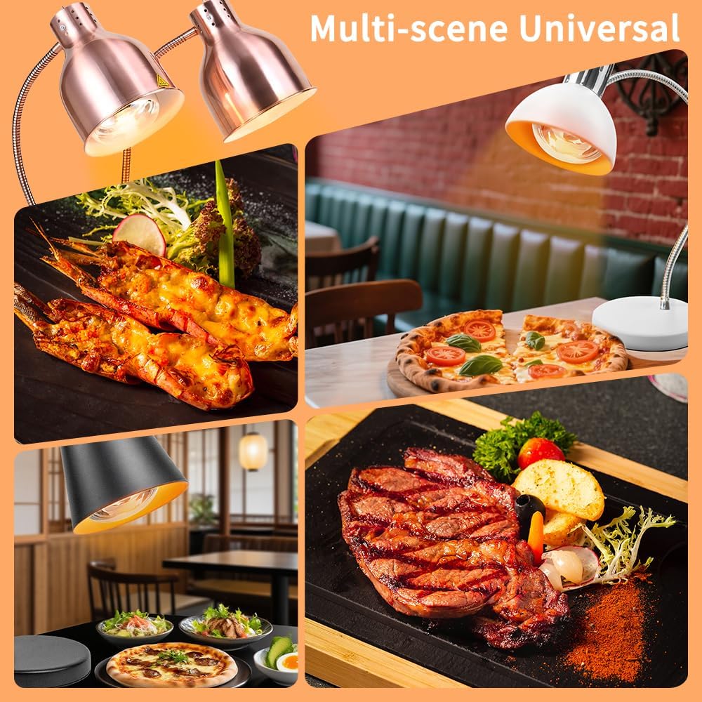 DUEBEL 275W Heat Lamp BulbsKeep Food at Its Best with Professional-Grade HeatUpgrade your food holding capabilities with our premium 275W Heat Lamp Bulbs. Engineered for performance and reliability, these bulbs are the ideal choice for chefs, restaurateurs, and catering professionals who demand the best in food presentation and temperature control.Superior Heat RetentionOur infrared heat lamp bulbs generate intense, penetrating heat that locks in moisture and flavor, preventing dishes from drying out or becoming cold. Whether you're keeping pizzas warm, showcasing desserts, or maintaining a hot buffet line, these bulbs ensure every item served is as delicious as when it was first prepared.Built for Demanding EnvironmentsWe understand the needs of a commercial kitchen. That's why our heat bulbs are constructed with durability in mind. The robust design withstands the rigors of daily use, offering you a longer-lasting solution that outperforms and outlasts standard options.Unmatched VersatilityWhile perfect as a food warmer lamp, the application of these bulbs extends far beyond:Pet Owners: Provides consistent basking as a reptile heat lampFarmers: Excellent as a heat lamp for chickens, ducklings and small animalsCommercial Use: Ideal for buffet stations, food warmers and holding cabinetsSpecifications & DetailsWattage: 275 WattsVoltage: 120VBase: Standard E26 (Medium Screw Base)Quantity: 4 BulbsSpecial Feature: Dimmable (requires separate dimmer switch)Application: Food Warmers, Commercial Kitchens, Reptile Terrariums, Poultry Brooders "Our premium heat lamp bulbs maintain perfect serving temperatures while preserving food quality - the secret weapon for professional food presentation in any commercial setting."