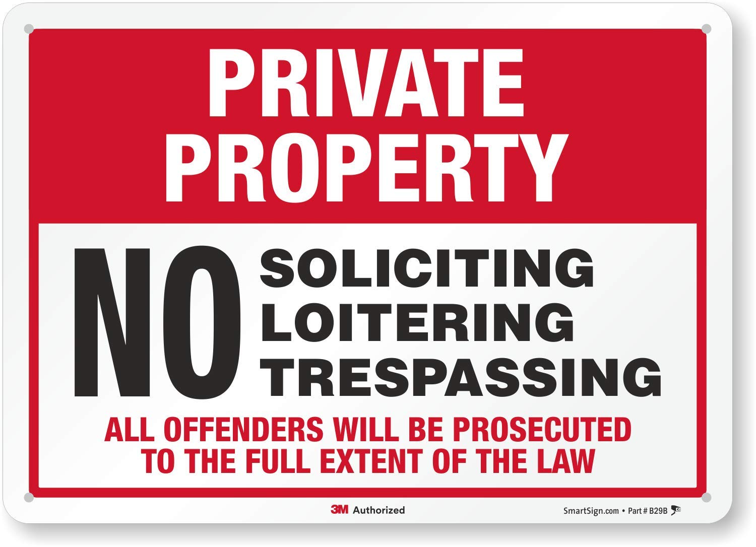| Pre Printed Text | no soliciting,no trespassing,private property,push |