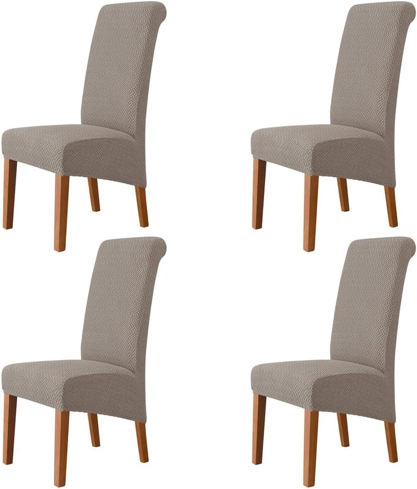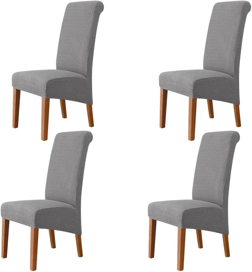 Hhigh back dining chair covers can be used for dining room, hotel, kitchen, restaurant, wedding banquet, dinner, meeting, celebration, dinner, ceremony, home decoration, etc.Soft & Comfortable: The stretch dining chair slipcovers are made of durable polyester fabric, soft and comfortable.Stretchable & Non-Slip: Convenient to install with sewn-in elastic band and give a snug fit on the chair that goes on easily and stays in place.Perfect Fit: Designed with High elasticity to perfectly fits most armless dining chair.CHAIR COVER SIZEBack height: 65-75 cmBack width: 35-48 cmSeat width: 38-46 cmSeat depth: 38-46 cmSeat thickness: 5-13 cmPlease check the size of your chair before orderingName: Hhigh Back Chair CoversMaterial: polyester + spandexColor: Beige, gray, dark gray, green, coffee, black, red, blue, khakiWeight: about 160g (1 piece)Package includes: 4/6 x chair cover (excluding chairs)Please Attention- Due to different light and screen, the color of the item may be slightly different from the image.- Due to manual measurement, please leave a distance of 1-3 cm. Please understand us, thank you very much.