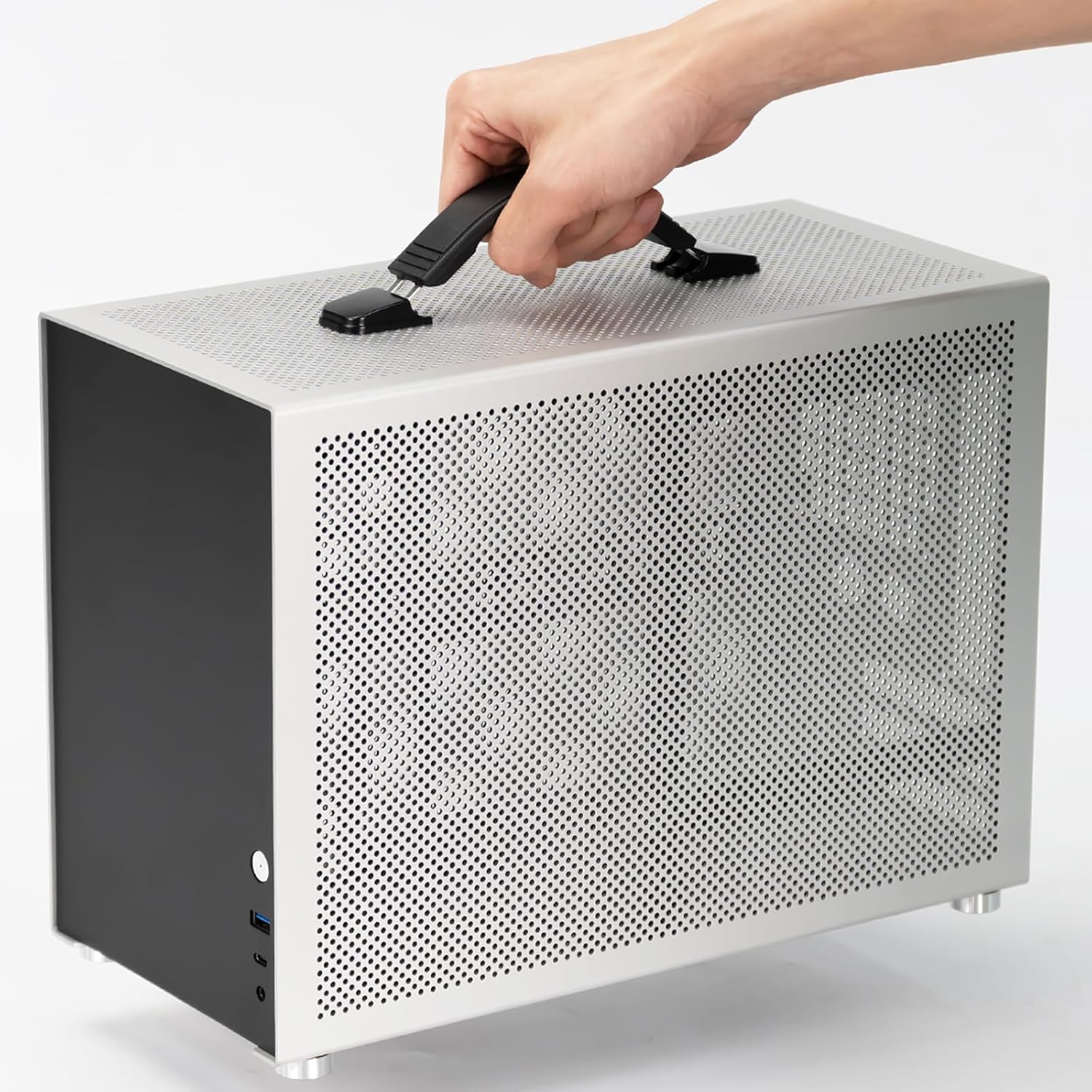 Case Parameters: Case size: 353*167*250mm Case Capacity: 14.7L Material: AL-MG high strength magnesium aluminum alloy Case Color: Anodized silver Frame Thickness: 2.0mm Other components thickness: 1.5mm Inside Aluminum Frame thickness: 1.5mm Net weight: 2.86KG Gross weight: 3.6KG(including package) Package Size: 420*240*330mm Hardware Supporting Specifications: Power Supply: ATX(140x150x86mm), SFX(125x100x63.5mm), SFX-L(125x130x63.5mm) Motherboard: ITX(170*170mm), DTX(170*203mm)(GPU must be at the fist Slot) Hard Drives: Inner Frame: 2.5''SSD*1 in the front Under air Cooling mode: PSU side 3.5''HDD*2 can replace 1*120/140 fan(it is not possible to install 2.5’’SSD and a bracket for 1*3.5’’ HDD needed) Graphics Card: Size 340*140*60mm(GPU slot on the motherboard should be in the first position. When GPU height exceeds 135mm, a converter adapter is required for PSU to GPU) Water Cooling: 280/240 Integrated water cooling Air Cooling: (A 120mm down-draft fan cooler will occupy the rear fan slot) Option 1: 135mm high tower radiator +1*90mm fan rear+ 1*140/120mm fan side Option 2: 100mm down-pressing radiator +1*90mm fan(rear)+ 2*140/120mm fan(side) Front interface: Aluminum Power Button * 1 10G/Type-C * 1 5G USB3.0 * 1 3.5 audio mic 2-in-1 interface*1 Package Including: D3 Case *1 Handle*1 9cm fan dust net * 1 Accessory Box * 1 PCIE blocking plate * 3 Rubber pads*2