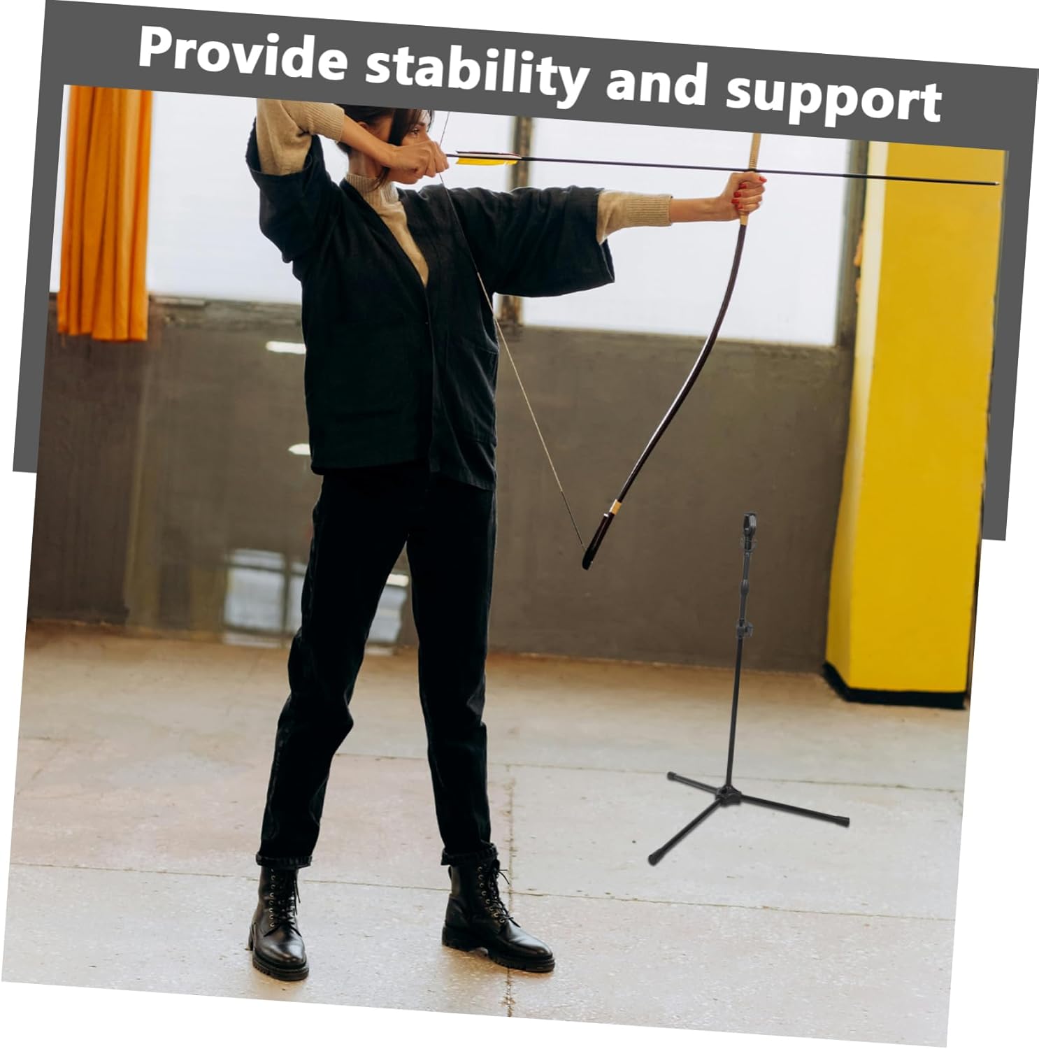 Package List 1 Stand 3 x Accessories Features -Material:Aluminum Alloy target stand -Color:Black stands -Size:62.50X26.00X26.00cm/24.56X10.22X10 folding bow stand. -The stylish black finish adds a sleek and modern touch to any setup stand. -Provides support and balance for enhanced shooting accuracy, improving overall performance bow stand for compound bow. -Adjustable design allows for your different bow support and balance adjustment for equipment holder. -The stabilizer feature ensures stability and steadiness during intense shooting sessions Target practice stand. -Compatible with a wide range of equipment, providing versatility and adaptability recurve bow stand.Goods Descriptionbow bracket Whether you're using a compound bow, a recurve bow, or a , this stand can accommodate your needs.bow display stand The adjustable design allows you to adjust the stand to fit your specific equipment, ensuring that you have the support and stability you need to shoot with confidence. stands The Stand is versatile and adaptable, making it suitable for a wide range of equipment